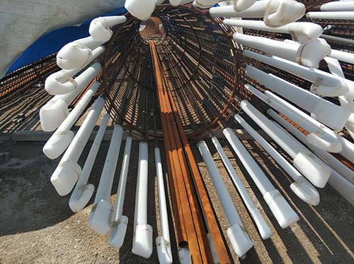螺旋式聲測管材質(zhì)的選擇,以透聲率較大、便于安裝及費(fèi)用較低為原則。 聲脈沖從發(fā)射換能器發(fā)出,通過耦合水到達(dá)水和聲測管管壁的界面,再通過管壁到達(dá)聲測 管管壁與混凝土的界面,穿過混凝土后又需穿過另一聲測管的兩個(gè)界面而到達(dá)接收換能器。